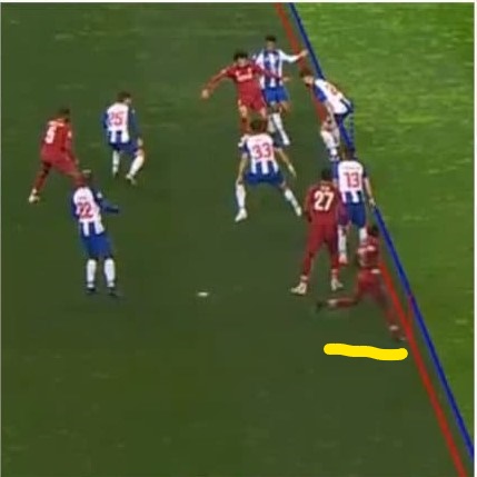 Mane ( Gold Line) makes his run towards space behind Porto’s defense
