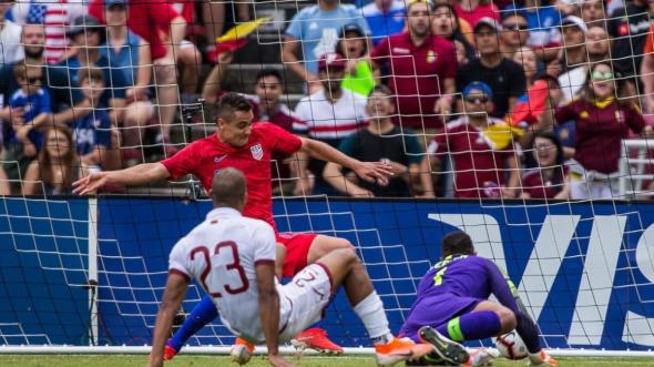Now Venezuela is no Brazil or Argentina despite coming from the same continent as those two international powers. They are typically considered one of the weakest South American sides. As the last practice against a foe before the Gold Cup games begin, this made them (like Jamaica) a perfect opponent for the new version of the USA men. …Oops, wrong again. In the first half the Americans made a shocking number of defensive mistakes. Mistakes, mind you, that a u-10 team might – MIGHT – be forgiven for making. At 15 minutes, goalkeeper Zack Steffen, off of a basic back pass, pushed the ball on the ground straight down the middle and into the feet of pleasantly surprised Venezuelan forward Yangel Herrera who was standing between Steffen and the intended receiver. After the goal was scored by Salomon Rondon, Steffen motioned like he expected help to come back to receive the pass. The problem was that this same mistake was made against Jamaica without costing a goal and that time it was Steffen’s fault also.
